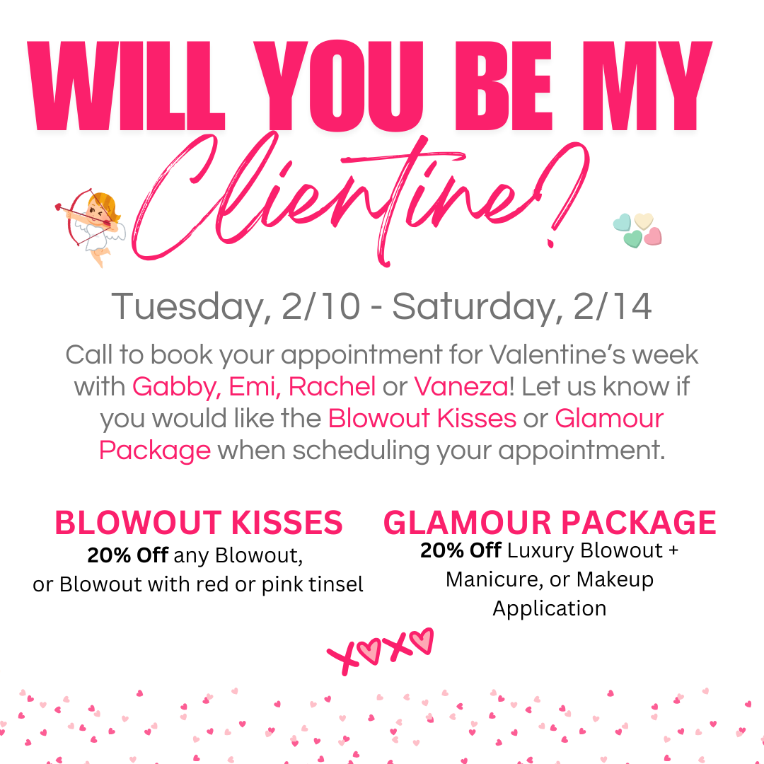 - 20% off Blowouts Valentine’s Week – call to book!